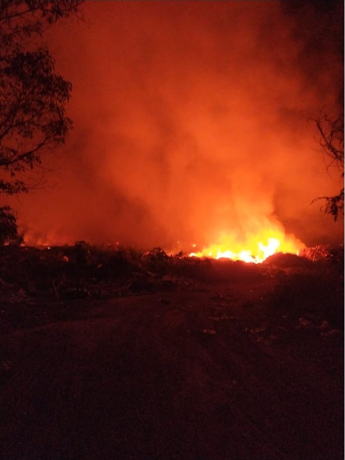 Bombeiros são acionados, durante esta madrugada, para atender incêndio no lixão em cidade de MS