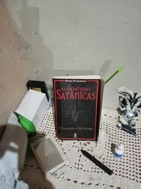 Na residência do casal foi encontrada uma bíblia satânica (As Escrituras Satânicas - A Filosofia do Satanismo).