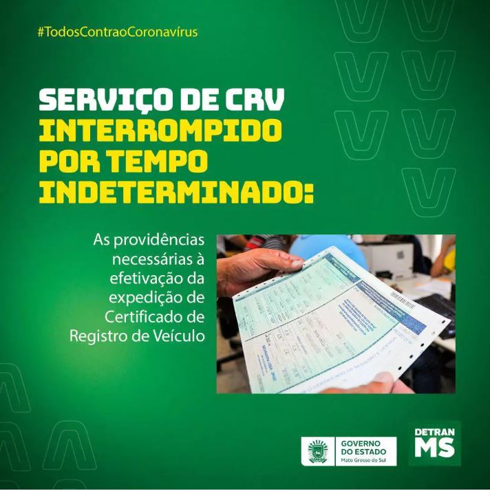 Suspensão por tempo indeterminado também dos prazos para expedição do Certificado de Registro de Veículo para quem comprou veículo a partir do dia 19 de fevereiro e não conseguiu fazer a transferência do CRV. Isto no caso de fiscalização.