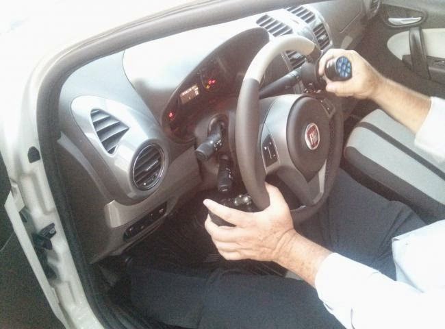 Adaptações para condutor que no caso deste Gran Siena custaram R$ 8.500 na oficina especializada de José Alves Pedrosa: só o pomo para comando da parte elétrica no volante a preço de R$ 6 mil (Danilo Galvão/Midiamax) |