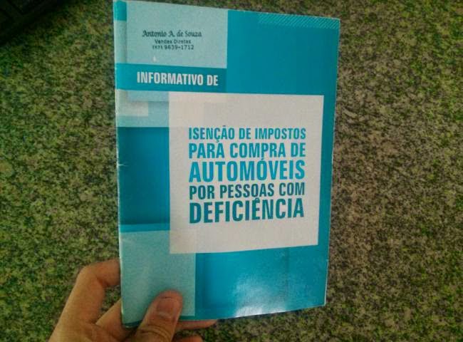 A intenção de compra, dada pela concessionária, também deve se pedida para, assim, levá-la à Secretaria Estadual de Fazenda, onde são protocolados os pedidos de isenção do ICMS. Após a compra do veículo, o usuário deve voltar a procurar a Secretaria de Fazenda a fim de obter a isenção do IPVA, que pode chegar a 60% do valor total. Em ambos os processos, o tempo de duração pode chegar a 35 dias.