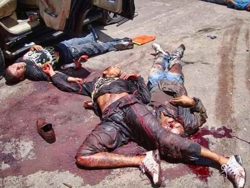 Policiais enchem caçamba do veículo com "presunto", jargão para cadáveres de criminosos