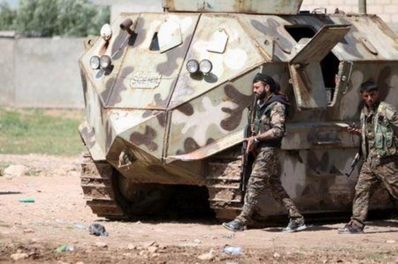 | Membros das Forças Democráticas Sírias, a brigada mista que reúne diversas etnias e nacionalidades, unidas no combate ao Estado Islâmico. |