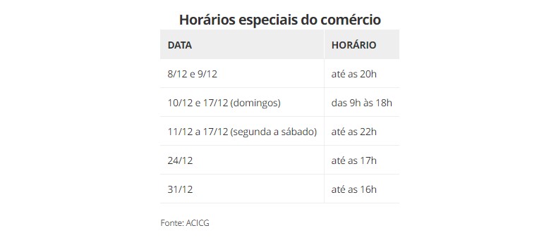 Em nota, a associação informou que nos dias 24/12 e 31/12 há exceção de horário para estabelecimentos em shoppings e em centros comerciais.