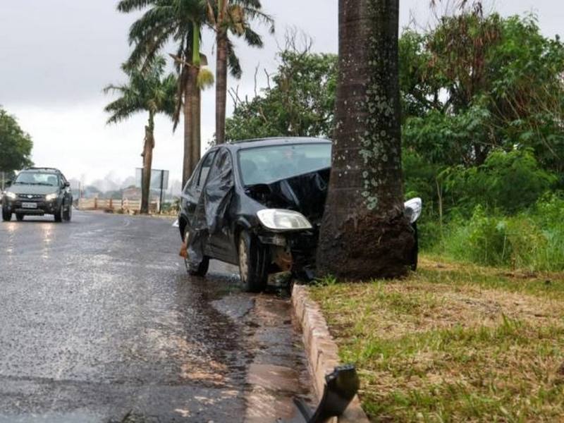 Motorista perde o controle e bate carro em árvore às margens do Rio Anhanduí