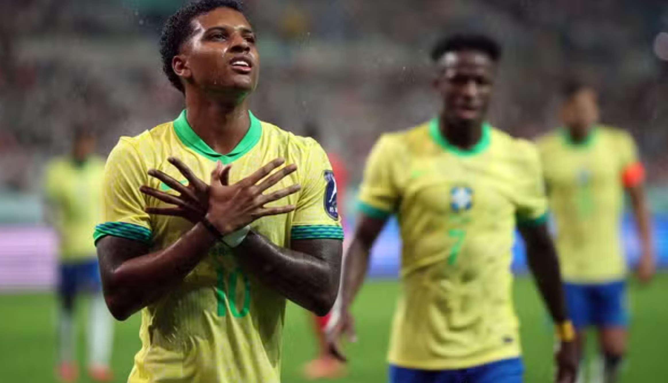 Mesmo sob chuva, o Brasil começou o jogo em ritmo acelerado e abriu o placar aos 12 minutos com Estêvão, após bela jogada de Rodrygo e Bruno Guimarães. A pressão seguiu intensa e, antes do intervalo, Rodrygo ampliou com assistência de Casemiro e participação decisiva de Vinícius Júnior, consolidando a vantagem brasileira.