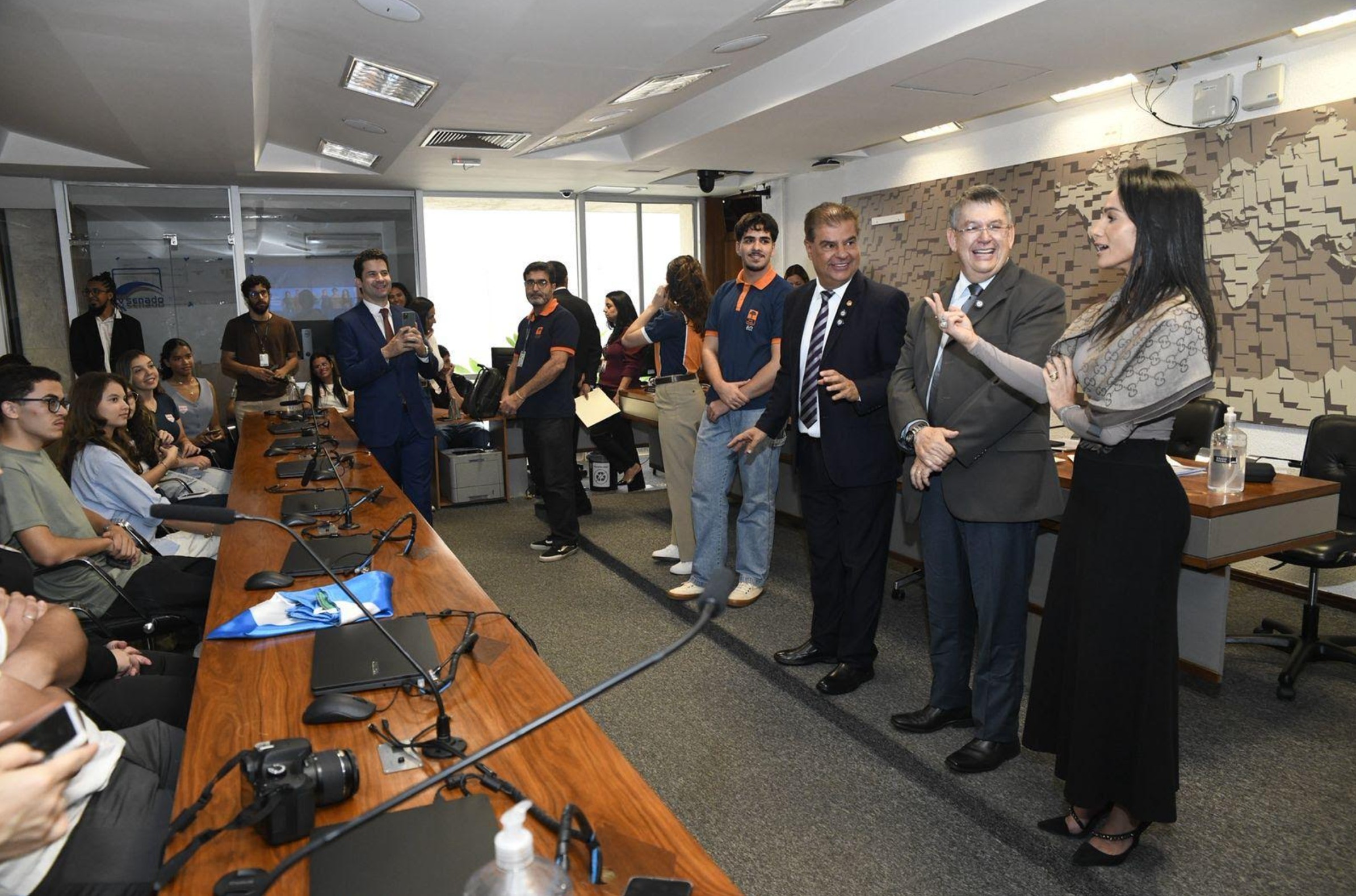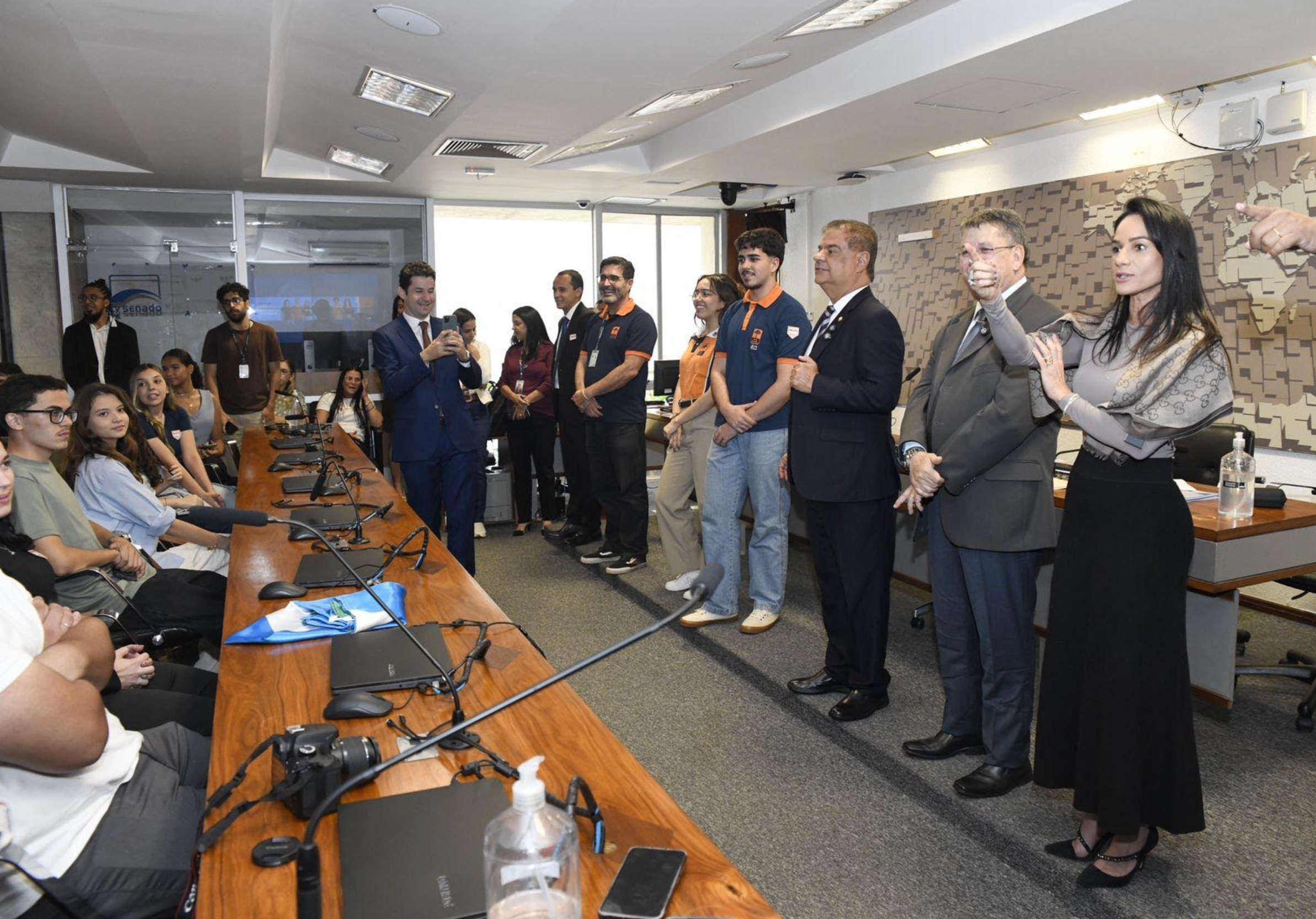 Acompanhados pelos professores Rodrigo Medeiros da Silva, Michelle Rodrigues Carneiro, Kris Akmi Scavassa e Benerice Comerom, além de assessores do senador, os estudantes vivenciaram um dia de aprendizado e inspiração sobre o papel do Parlamento brasileiro.