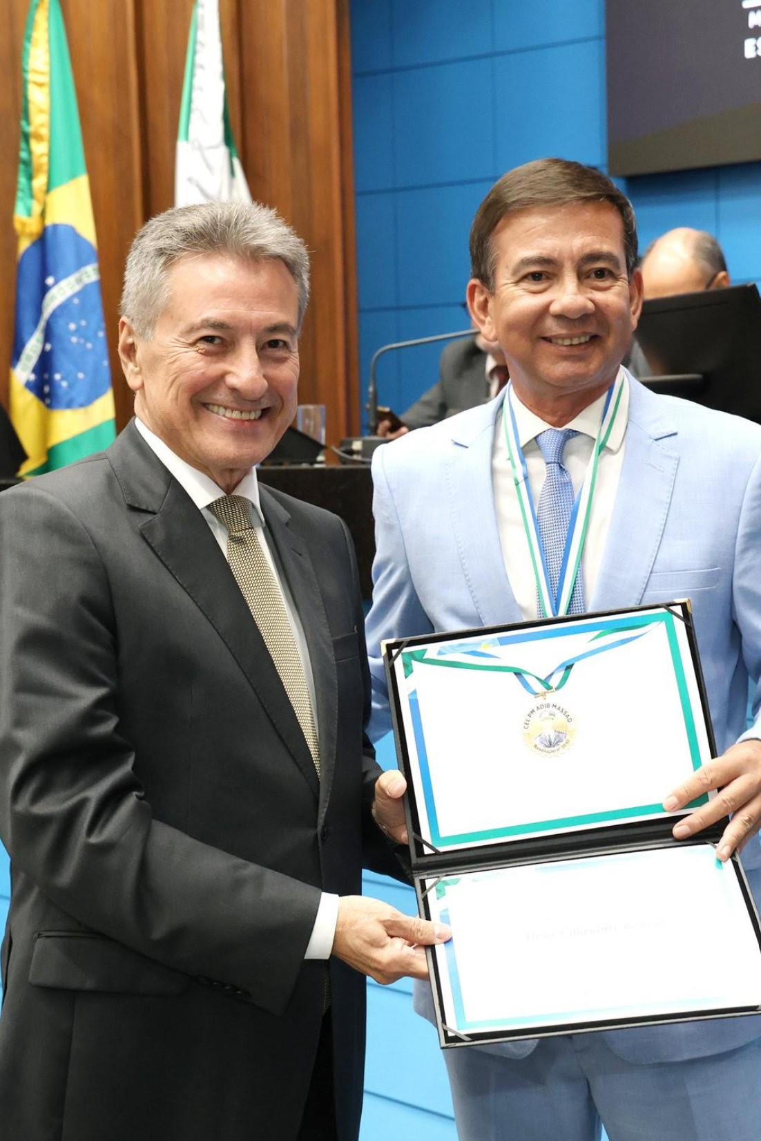A Assembleia Legislativa de Mato Grosso do Sul (ALEMS) realizou, na noite desta terça-feira (25), sessão solene para a entrega da Medalha Coronel PM Adib Massad, honraria concedida a profissionais que prestaram serviços relevantes à segurança pública do Estado. Instituída pela Resolução 31/2017, a medalha é considerada uma das mais importantes comendas da área.