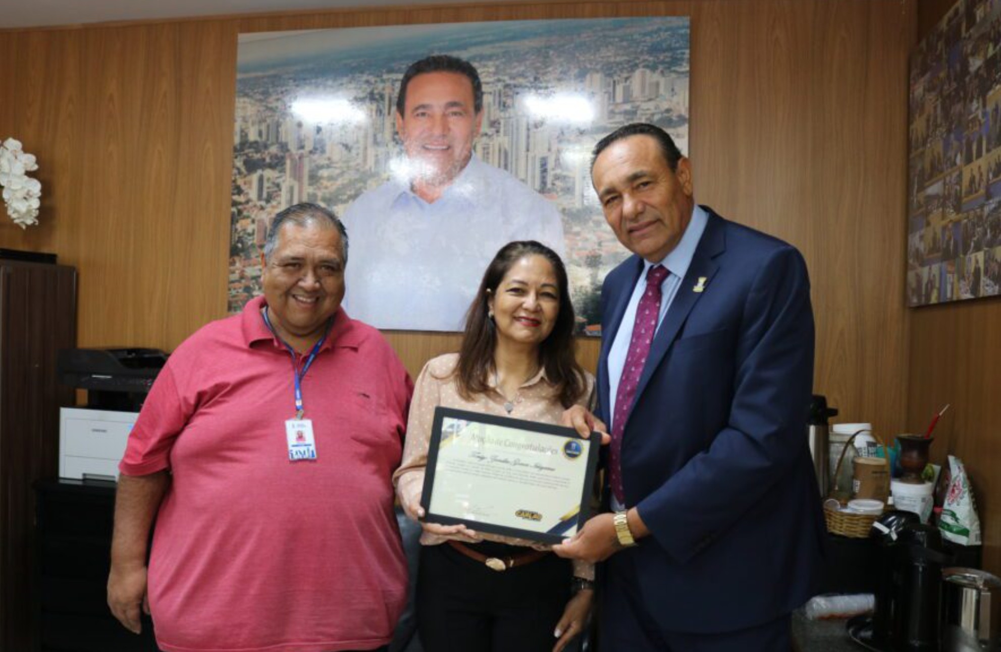 Na manhã desta terça-feira (14), o vereador Carlos Augusto Borges, o Carlão (PSB), 1º secretário da Mesa Diretora da Câmara Municipal de Campo Grande, entregou Moções de Congratulações aos empresários Tomiyo Zumilka Gomes Ishiyama e Josemar Ferreira Lima, em reconhecimento ao trabalho que ambos desempenham na economia local.