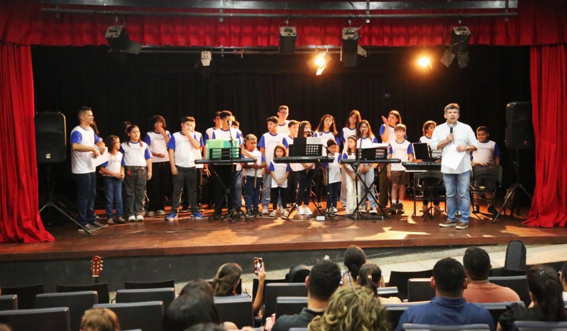 Durante a cerimônia, Lidio Lopes celebrou o crescimento do projeto e o envolvimento das famílias, ressaltando o papel da música na formação humana e social dos alunos.
