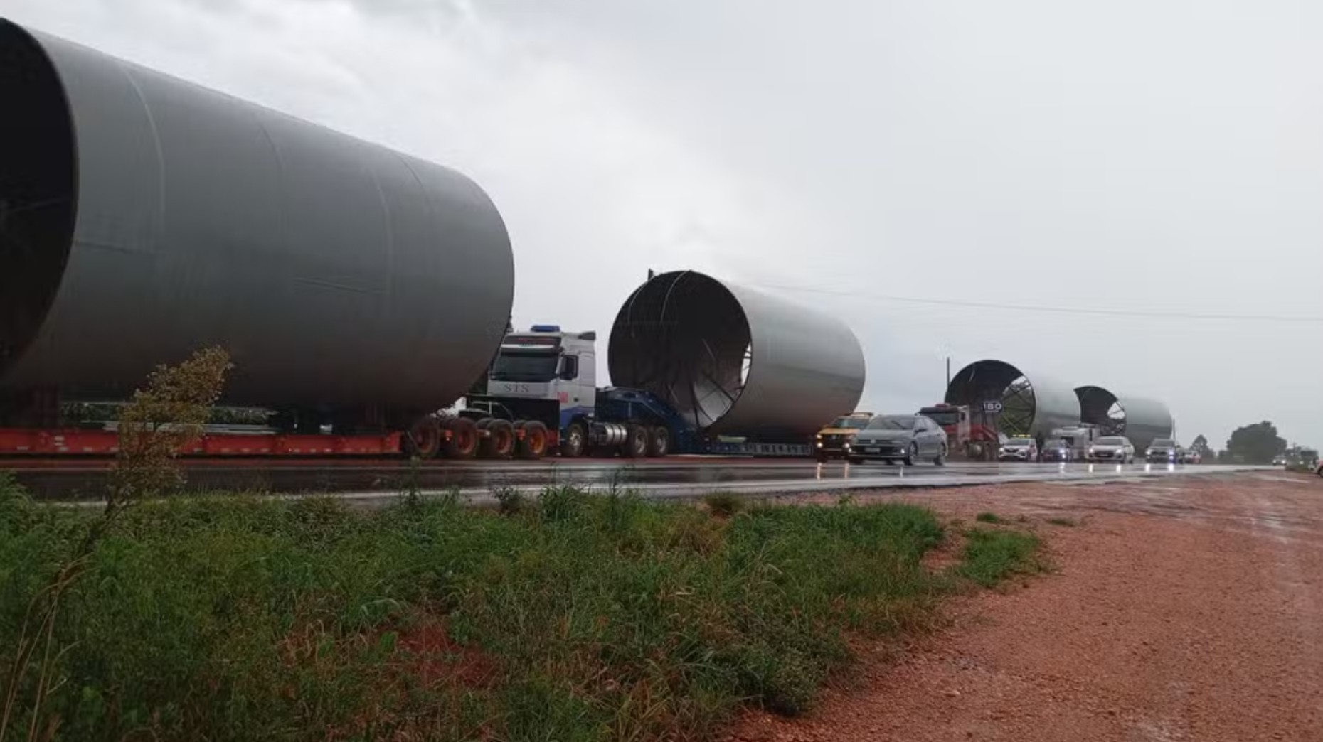 As cargas são consideradas superdimensionadas e estão sendo deslocadas em comboios especiais, com escolta da Polícia Militar Rodoviária (PMR) e da Polícia Rodoviária Federal (PRF). As peças chegaram ao Porto de Paranaguá (PR) no ano passado, vindas da China, e o transporte terrestre teve início nesta semana, com conclusão prevista para os próximos dias.