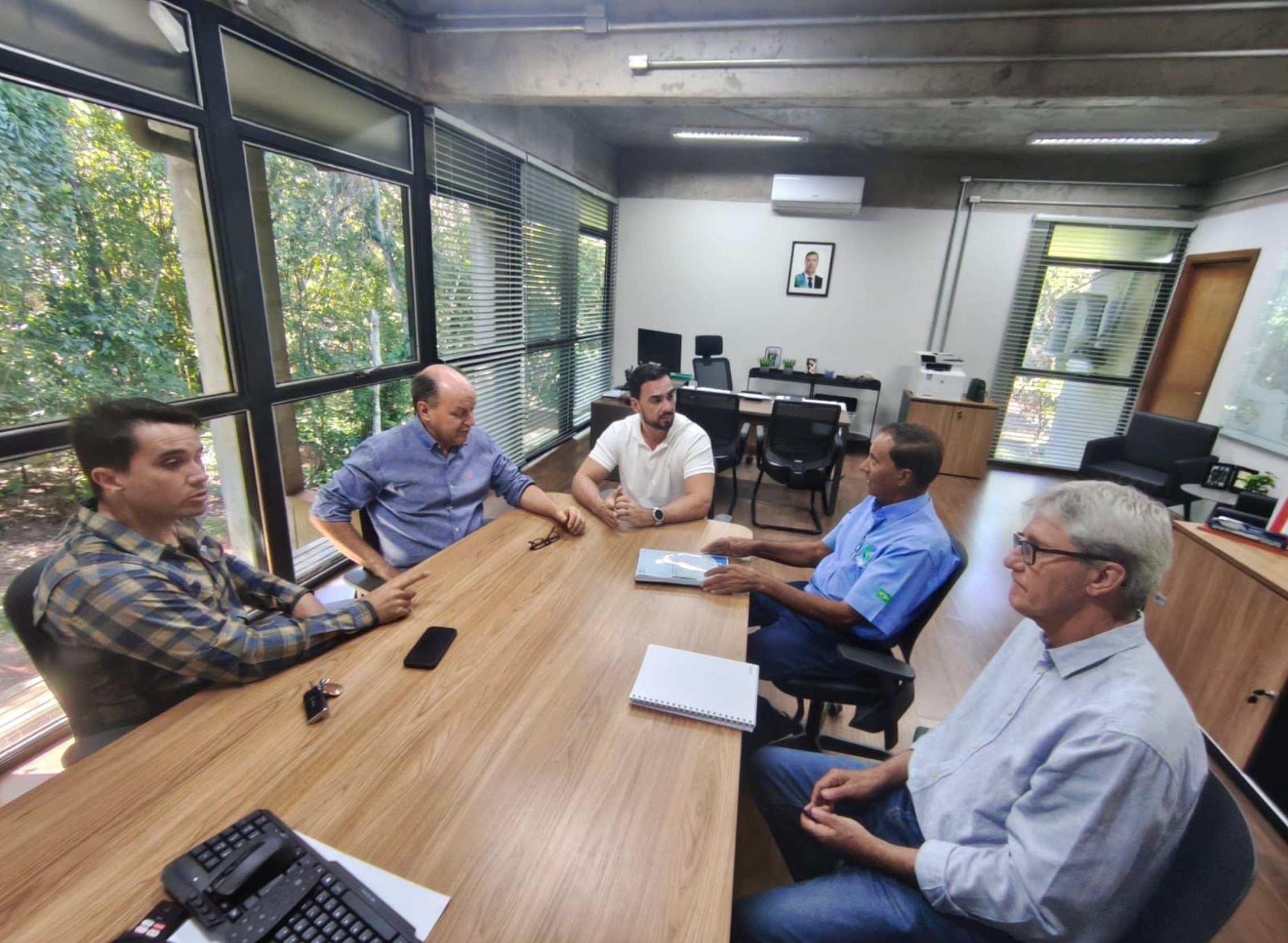 Participaram da reunião o diretor do COINTA, Pedrinho, o engenheiro Caio, o secretário-adjunto de Infraestrutura e Logística, Luiz Otávio, e o diretor-presidente da AGESUL, Rudi Fioreze.