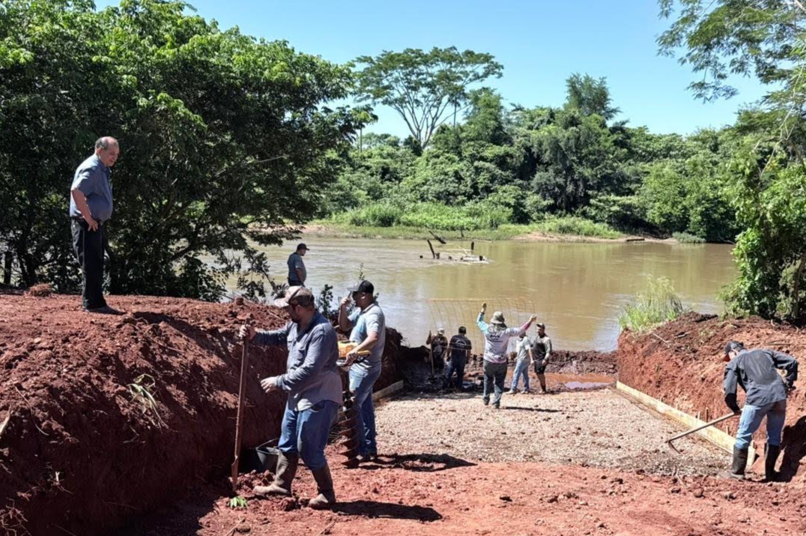 O deputado estadual Zé Teixeira acompanhou, no domingo (25), o avanço das obras do descedor público de barcos no Rio Dourado, localizado em Porto Cambira, às margens da MS-156, na região que atende Dourados e Caarapó. A visita marcou uma etapa importante do projeto, com a realização de concretagem da rampa e plantio de mudas de árvores no entorno da estrutura.