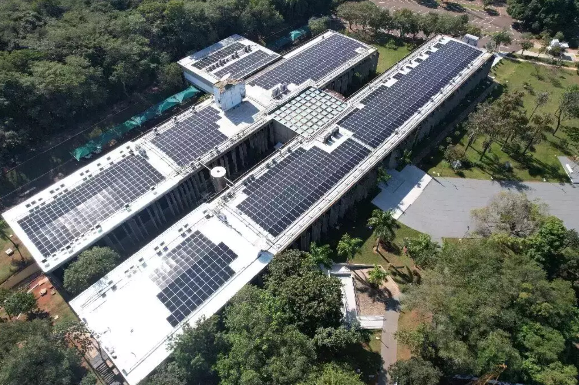 Inaugurada em junho de 2025, a usina ocupa área de 6.100 metros quadrados no telhado da ALEMS e é composta por 1.907 módulos fotovoltaicos Risen de 695 Wp e oito inversores Sungrow de 110 kW.