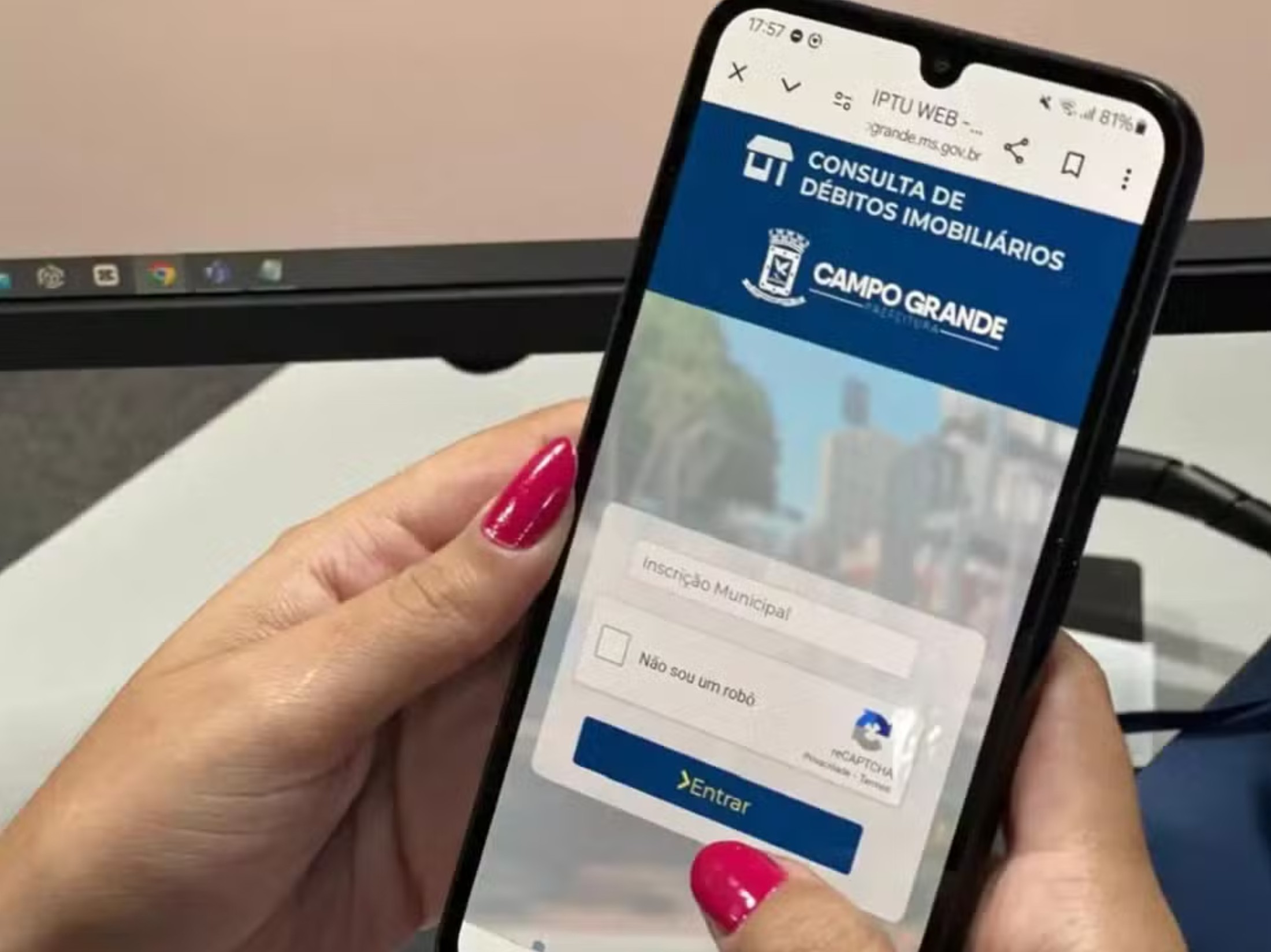 Para acessar o boleto, é necessário informar o número da inscrição municipal do imóvel no portal da Prefeitura de Campo Grande (campogrande.ms.gov.br), por meio do banner específico do IPTU 2026.