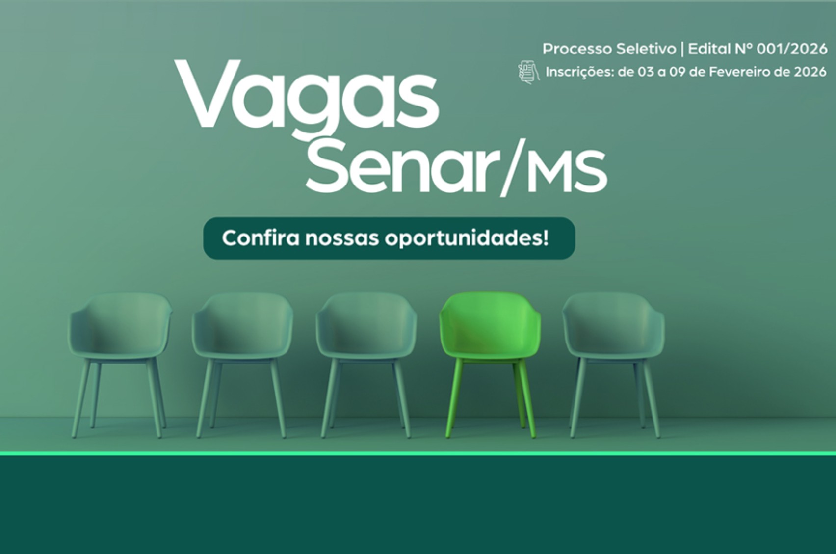 As inscrições devem ser feitas até 13 de março, no portal oficial da instituição: https://senarms.org.br/trabalheconosco