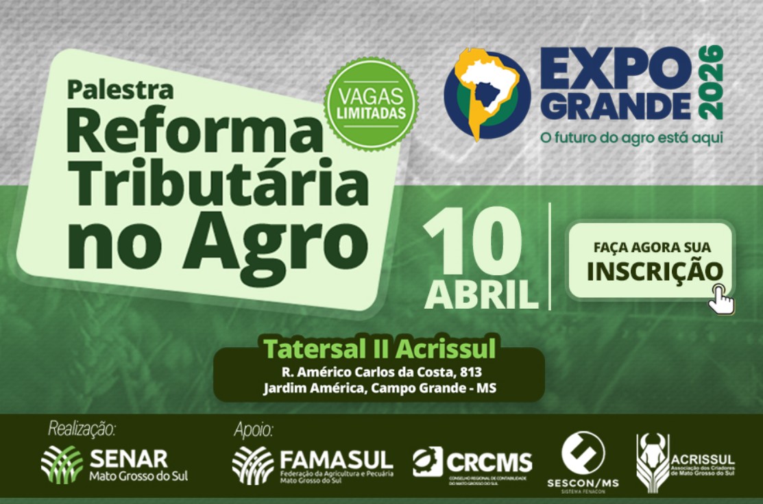 A ação conta com apoio da Famasul, Acrissul, Conselho Regional de Contabilidade de Mato Grosso do Sul e Sindicato das Empresas de Serviços Contábeis, de Assessoramento, Perícias, Informações e Pesquisas no Estado de Mato Grosso do Sul. O evento reunirá especialistas, representantes do setor produtivo e profissionais ligados ao agronegócio para discutir como a reforma tributária pode afetar a produção rural, a comercialização de produtos e a organização financeira das propriedades.