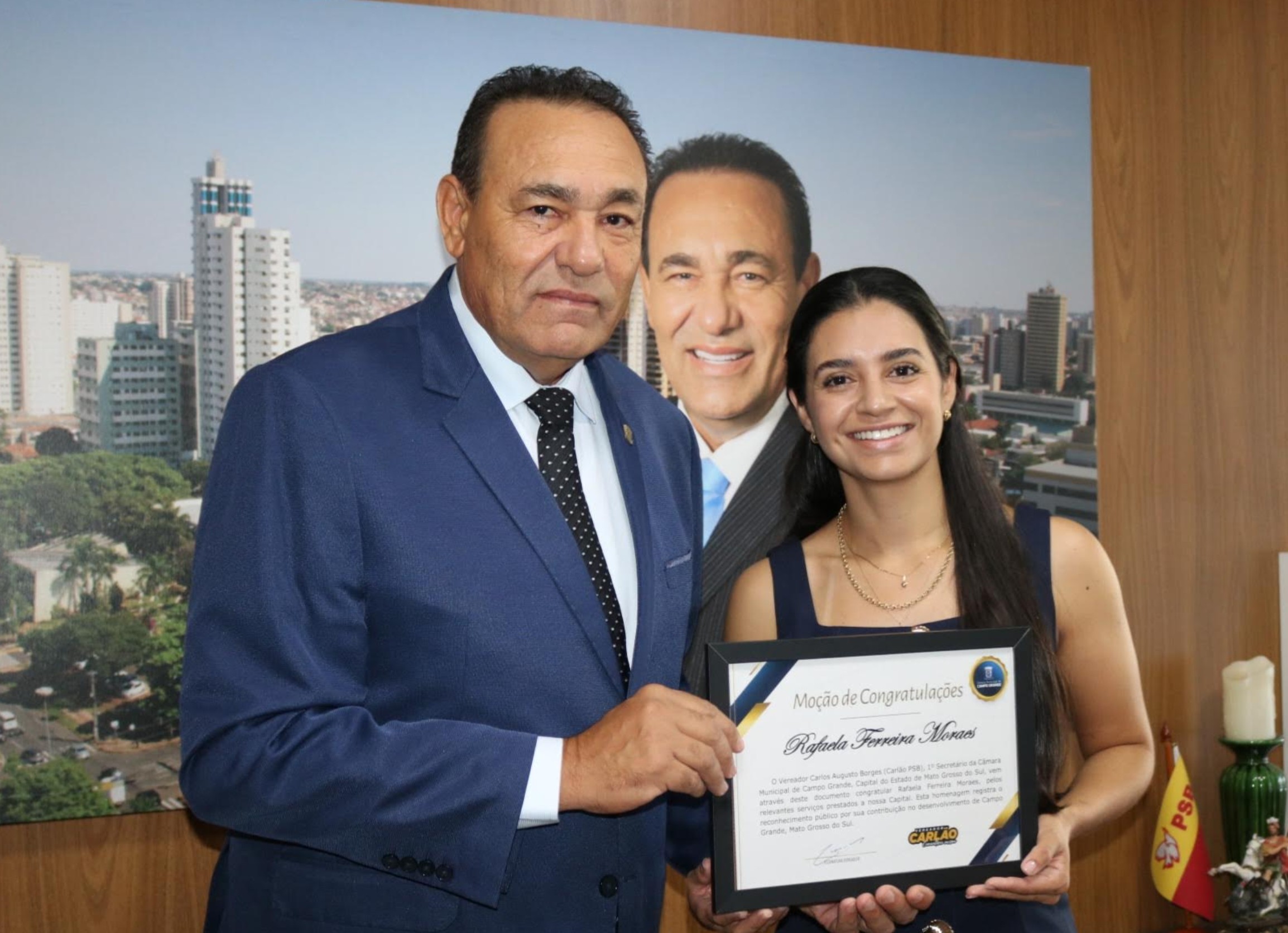 O vereador Carlão entregou uma Moção de Congratulações à confeiteira Rafaela Ferreira Moraes, conhecida pela marca Rafa Doces, em reconhecimento à trajetória construída no empreendedorismo e à contribuição da jovem para a economia criativa de Campo Grande. A homenagem foi divulgada pela Câmara Municipal como uma forma de destacar iniciativas locais que transformam talento e esforço em geração de renda e inspiração comunitária.