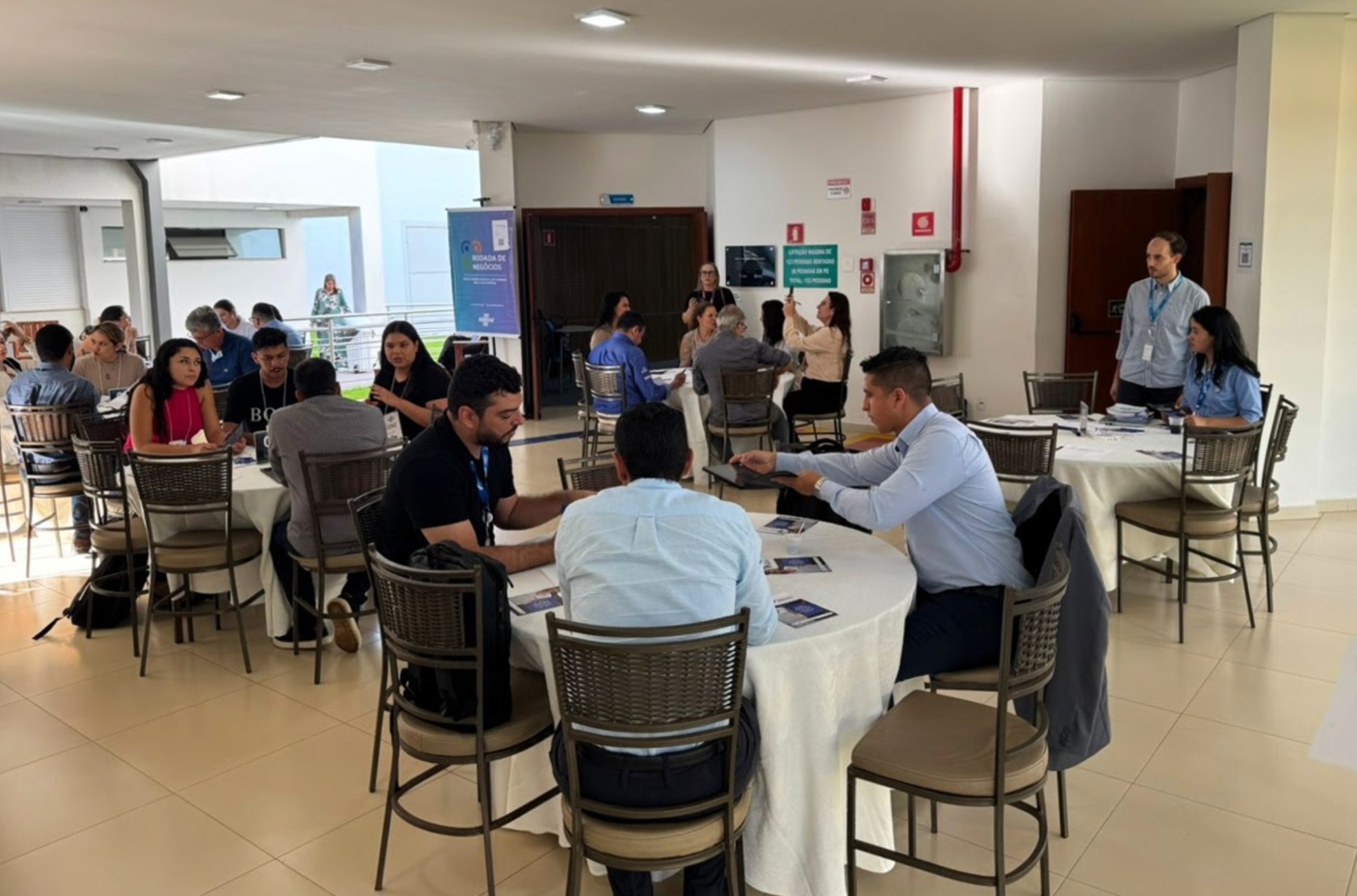 Na prática, a sessão de negócios funcionou como uma rodada estruturada de encontros rápidos entre empresas. Em um sistema de revezamento, os participantes tiveram a oportunidade de apresentar produtos e serviços diretamente a potenciais clientes e parceiros, criando um ambiente dinâmico de networking e negociação.