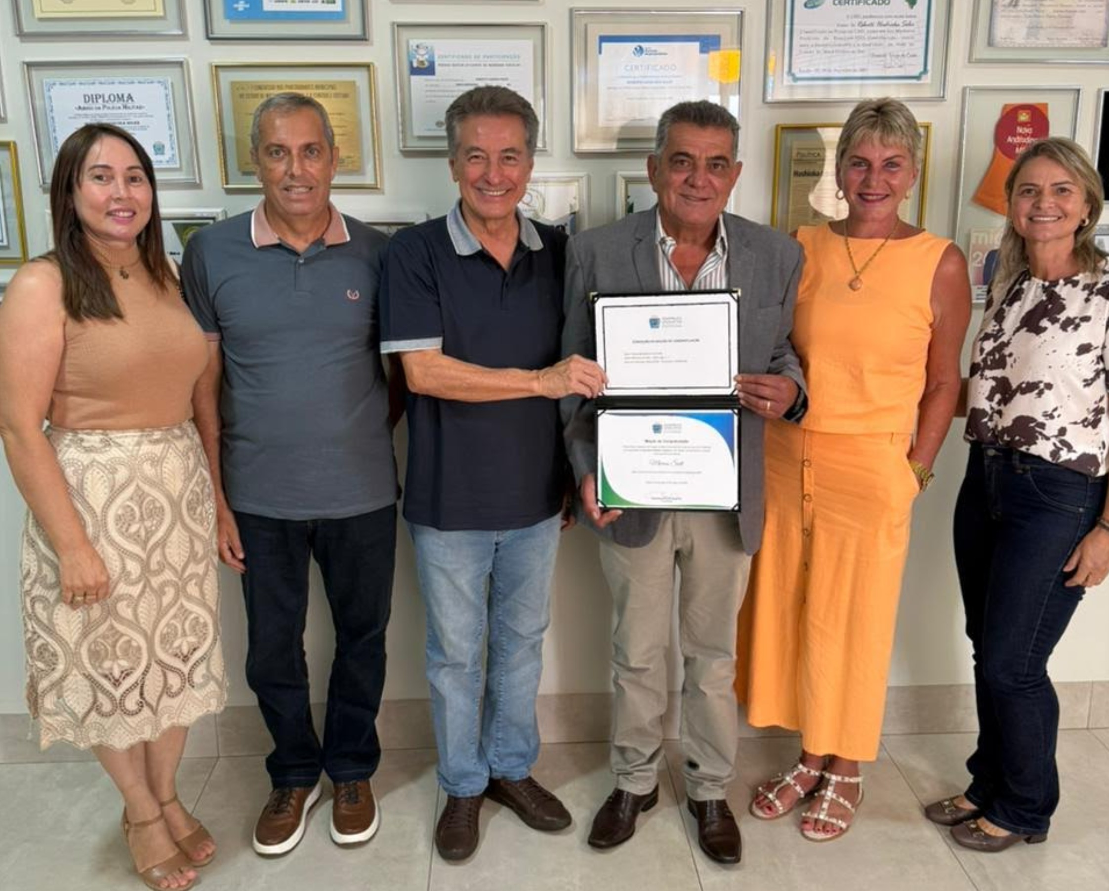 O deputado estadual Roberto Hashioka (União) entregou, na manhã desta sexta-feira, 27, uma Moção de Congratulação a Marcos Sesti, em reconhecimento aos serviços prestados à comunidade de Bataguassu. A homenagem foi realizada no escritório parlamentar do deputado, em Nova Andradina.