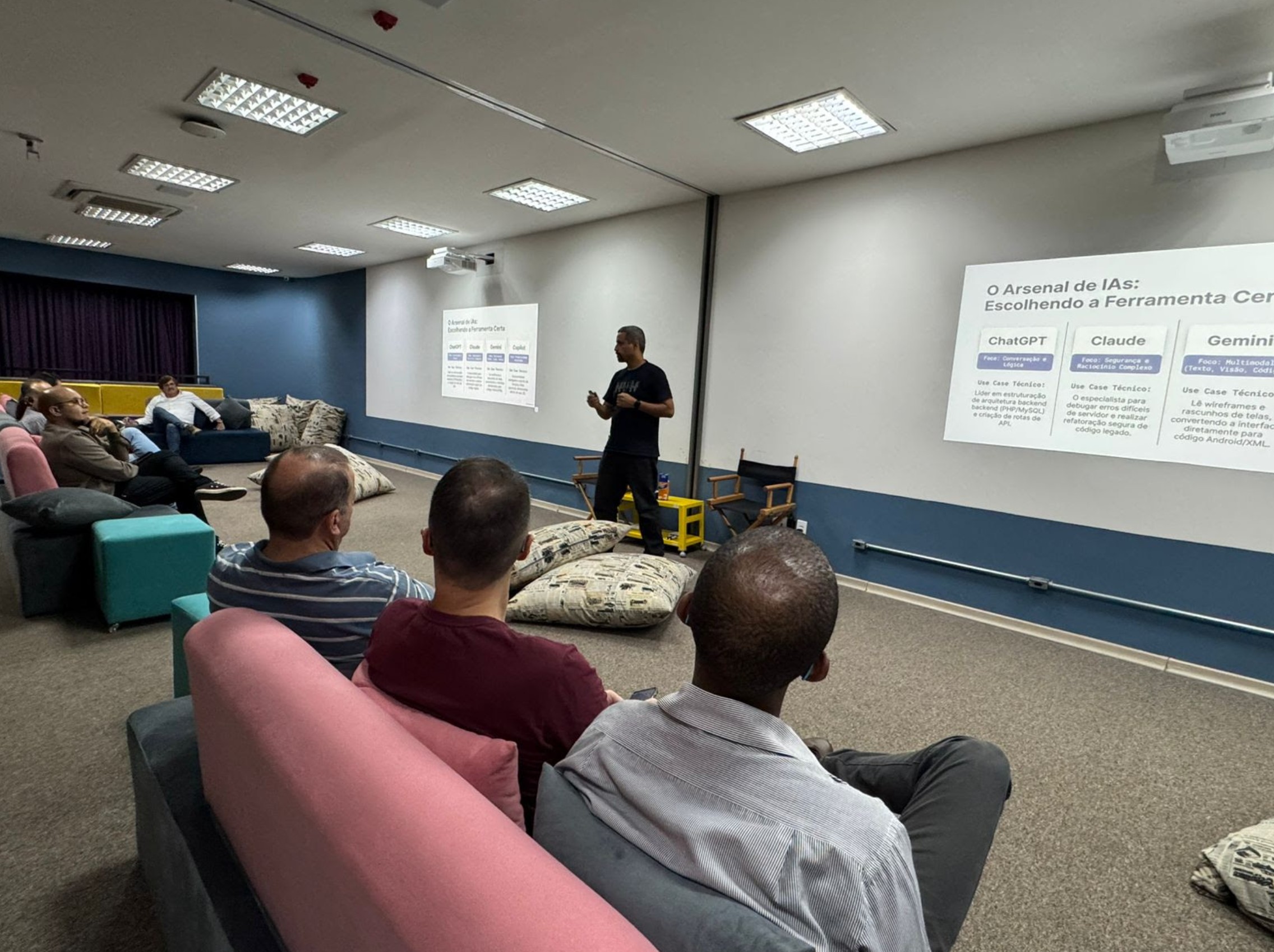 Durante o encontro, os participantes acompanharam quatro etapas do processo de criação de sistemas: a compreensão das dores que originam soluções tecnológicas, a evolução gradual dos projetos, o uso da inteligência artificial como ferramenta de apoio no desenvolvimento e, por fim, um desafio prático em que os empreendedores puderam construir, na prática, a base de um minissistema. A atividade reforçou o papel da inteligência artificial como aliada do empreendedor, ampliando a produtividade e apoiando processos criativos e estratégicos.