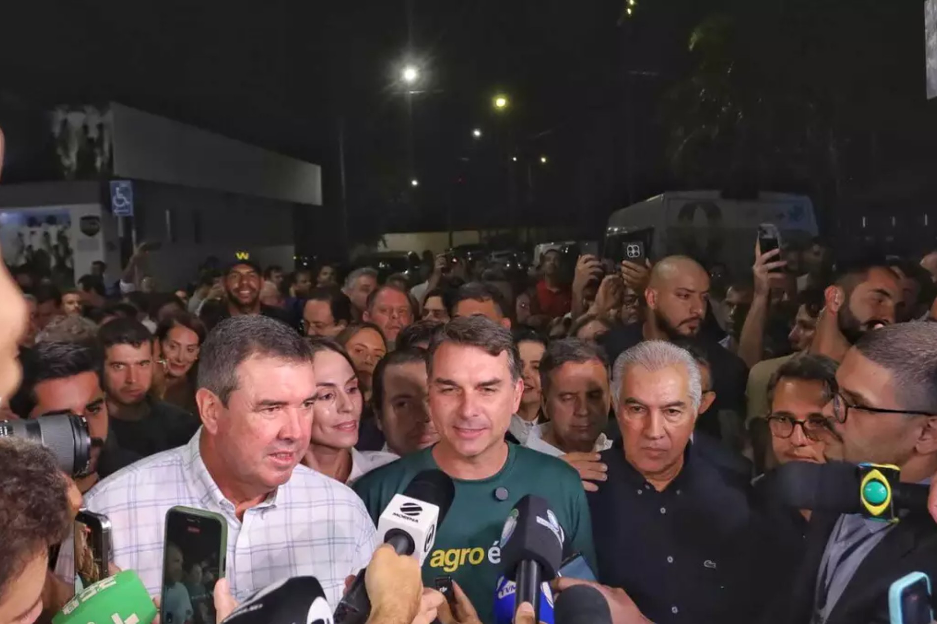 Durante conversa com a imprensa, o senador também reforçou o alinhamento político do grupo com a reeleição do governador Eduardo Riedel (PP). A visita de Flávio a Mato Grosso do Sul já vinha sendo tratada como parte do esforço de aproximação com aliados locais e de fortalecimento da articulação para 2026. Na agenda desta quinta, ele esteve acompanhado de Riedel e de Azambuja, inclusive em passagem pelo Bioparque Pantanal, antes de seguir para a abertura da feira agropecuária.