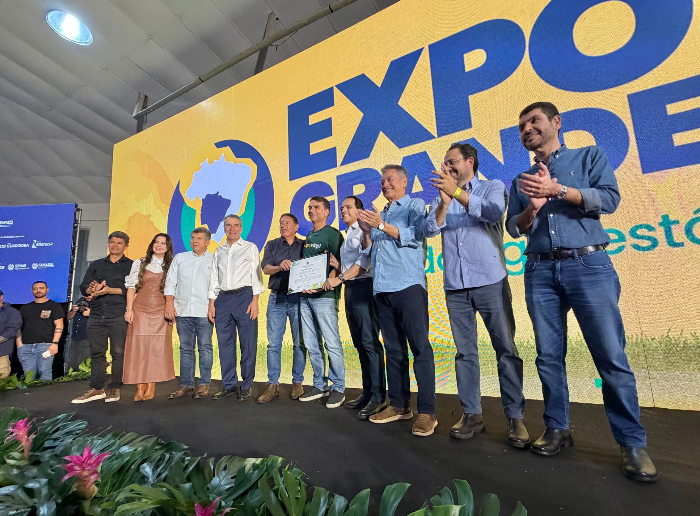Na mesma solenidade, os deputados estaduais entregaram o título de Visitante Ilustre ao senador Flávio Bolsonaro, em ato realizado durante a programação de abertura da feira. O evento também marcou a inauguração do estande institucional da Assembleia Legislativa dentro da Expogrande.