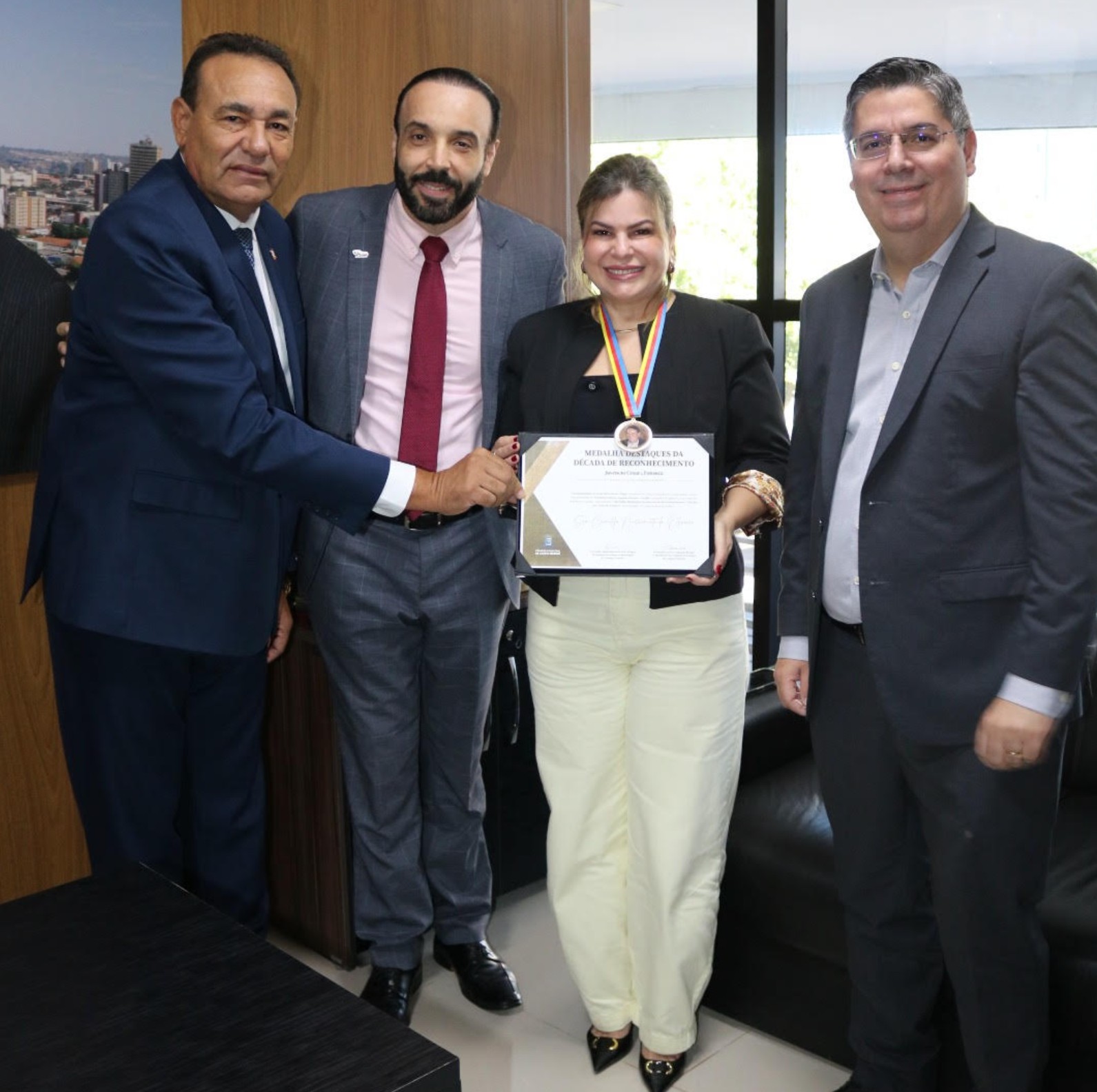 A solenidade também contou com a presença dos vereadores Prof. Juari e Dr. Victor Rocha. A medalha é destinada a personalidades que, ao longo dos últimos dez anos, tenham prestado serviços de relevância para a sociedade campo-grandense, com atuação reconhecida em benefício da população.