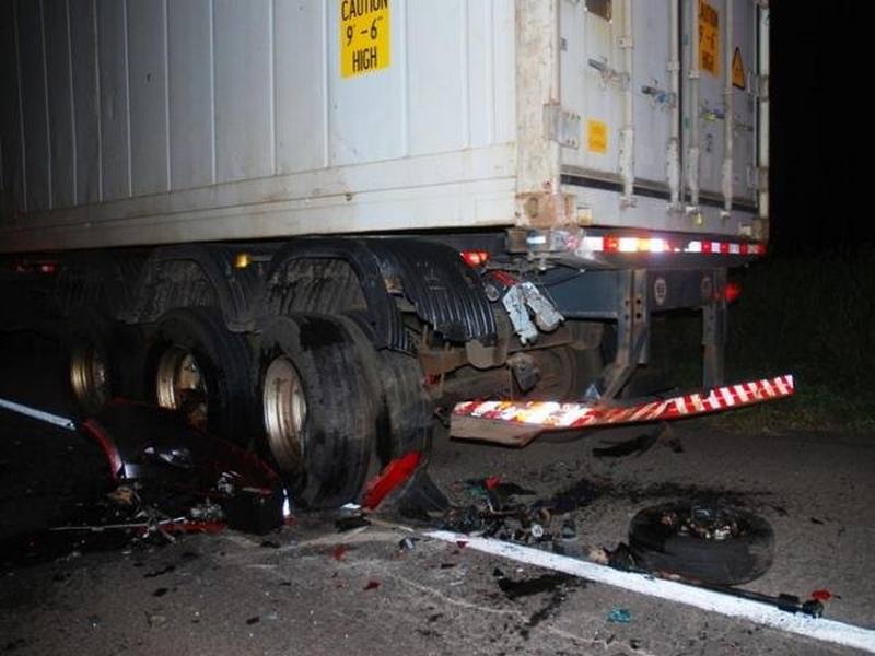 | Suspeita é de que o condutor do Ford Ka estava em alta velocidade e não percebeu a carreta parada ©Tiago Apolinário |