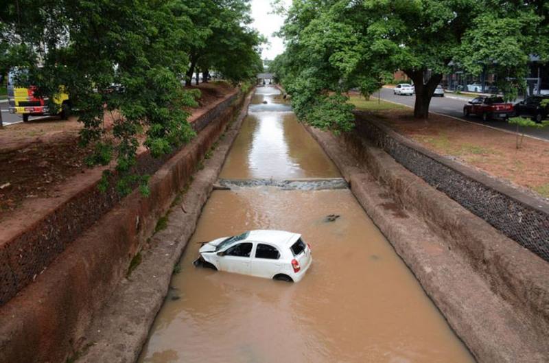 Carro some e mulher o encontra caído dentro de córrego na Capital