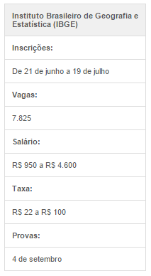 O Instituto Brasileiro de Geografia e Estatística (IBGE) encerra nesta terça-feira (19) as inscrições de dois processos seletivos para um total de 7.825 vagas em cargos de níveis médio e superior. Os salários vão de R$ 950 a R$ 4.600.