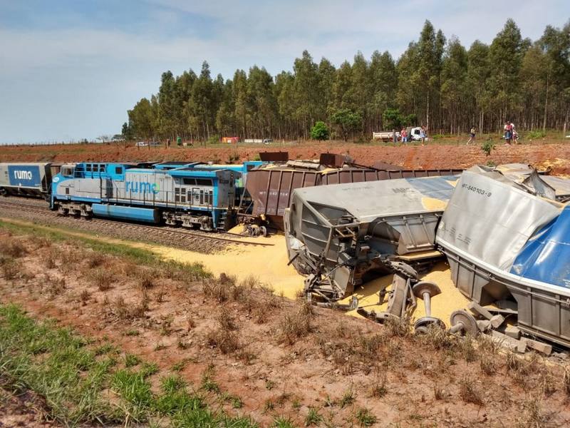 A carga saiu de Chapadão do Sul, também em Mato Grosso do Sul, e seguiria para o porto de Santos. Os dois maquinistas sofreram escoriações e foram levados para um pronto socorro da cidade.