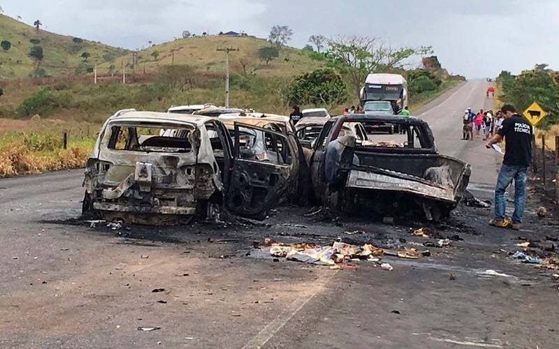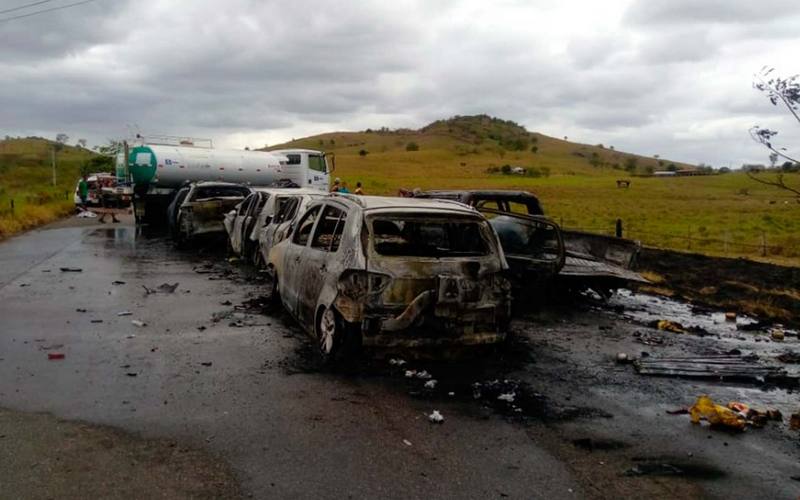 | Acidente envolvendo nove carros na BA-130 deixa seis carros incendiados ©BATV – Salvador |