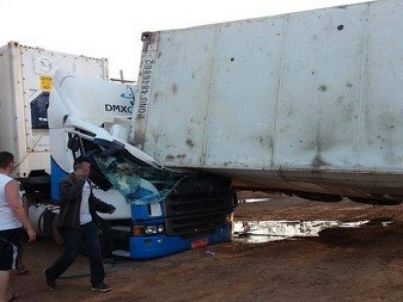 Contêiner cai sobre carreta e mata manobrista em frigorífico