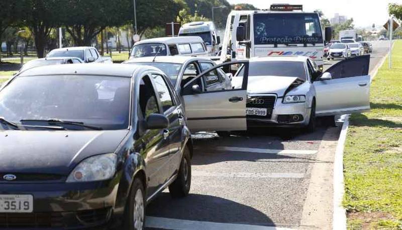Condutora de Audi provoca engavetamento ao colidir em carros parados no sinal