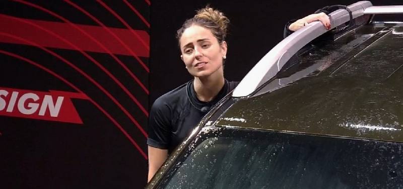 Paula estava do lado direito do carro; na formação inicial, antes das desistências, ela tinha a companhia de Hariany e Carol Peixinho. Do lado esquerdo, estavam Gabriela, Alan e Rízia.