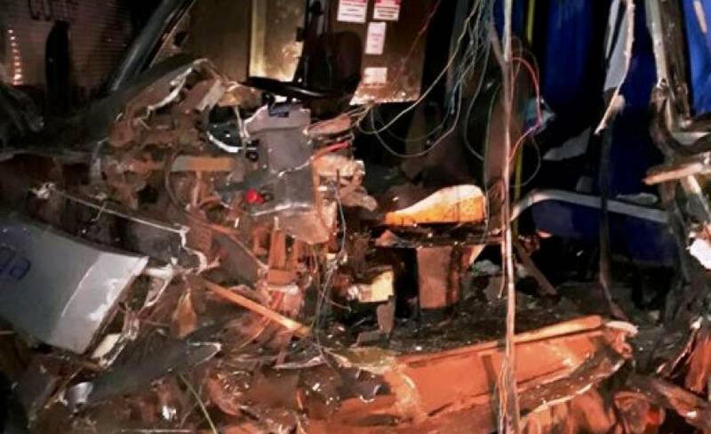 Dois ficam presos às ferragens em colisão entre micro-ônibus e caminhão