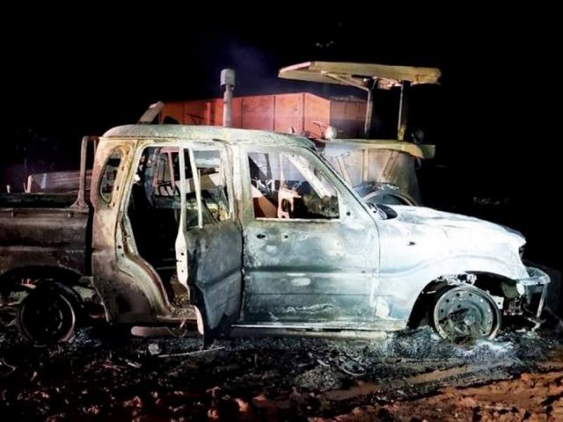 | Caminhonete e trator queimados por terroristas paraguaios em uma fazenda perto da fronteira ©ABC Color |