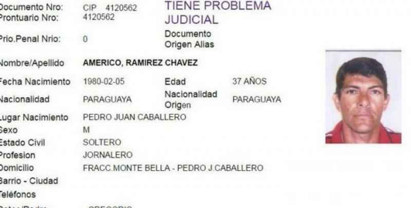 Conforme a Chefatura da Polícia Nacional no departamento de Amambay, Americo Cháves estava sendo procurado por um homicídio ocorrido em abril do ano passado em Pedro Juan Caballero.