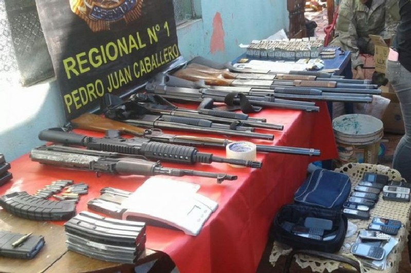| Foram apreendidas armas, munições, carregadores, cocaína e aparelhos de telefone celular. (Foto: Cándido Figueredo/ABC Color) |