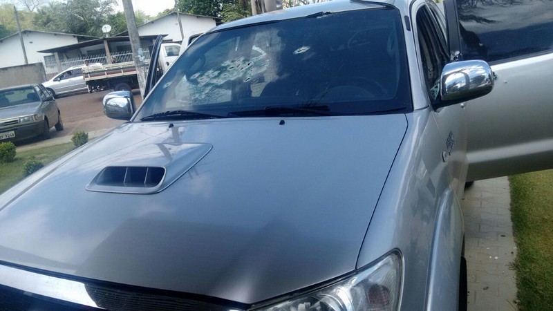 | Vários tiros atingiram o veículo. (Foto: Direto das Ruas) |