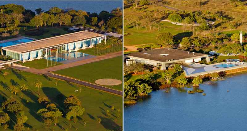 | Imagens aéreas mostram os palácios da Alvorada (esq.) e do Jaburu (dir.) (Foto: Ichiro Gerra/Presidência da República) |