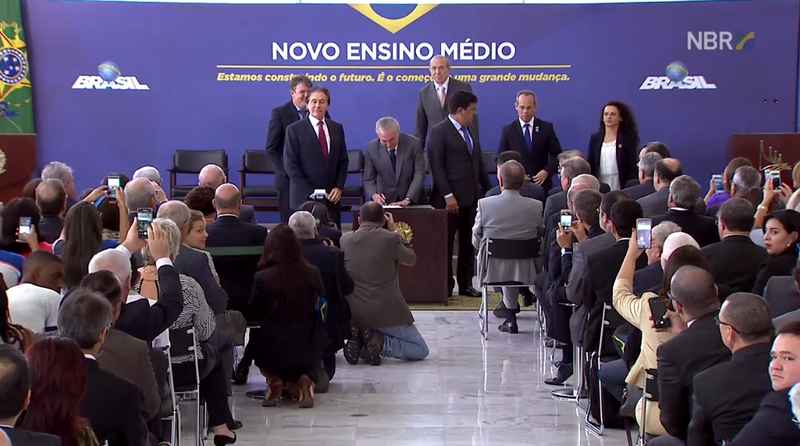O presidente da República, Michel Temer, sancionou nesta quinta-feira (16), em cerimônia no Palácio do Planalto, a lei que estabelece a reforma do ensino médio.