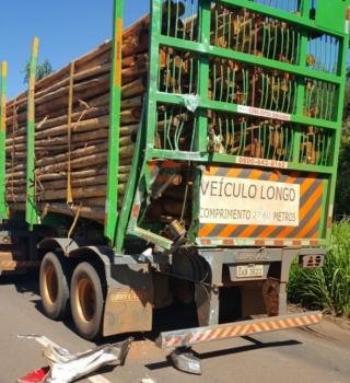 | Caminhão estava carregado de madeira (Foto: JPNews) |