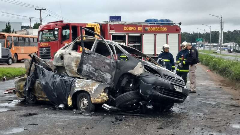 Dois ocupantes de um dos carros e três do outro morreram carbonizados. A vítima ferida foi encaminhada ao Hospital Evangélico, segundo o Corpo de Bombeiros.