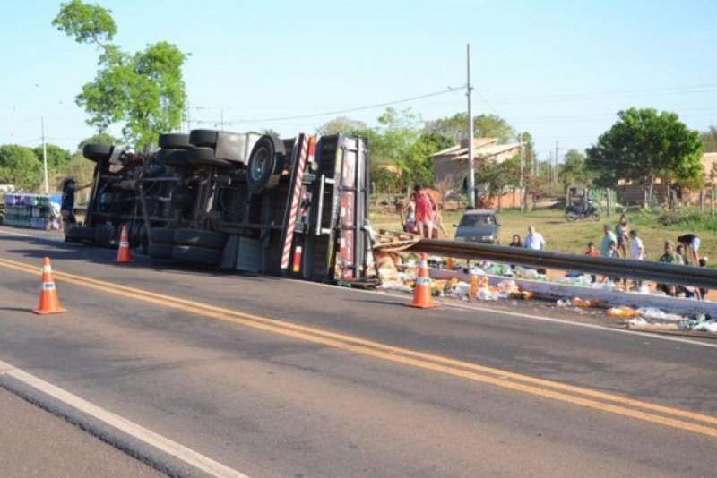 Caminhão tomba e parte da carga de refrigerante é saqueada