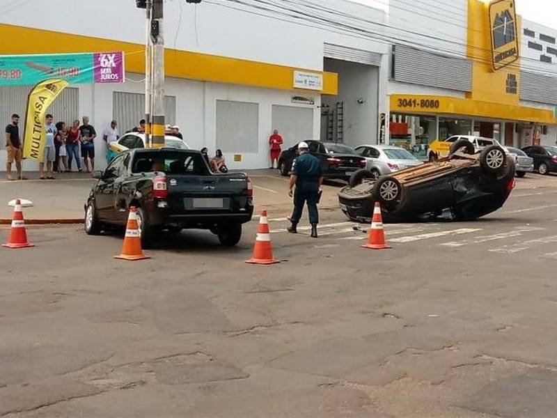 Carro capota após colisão em cruzamento sinalizado na região central