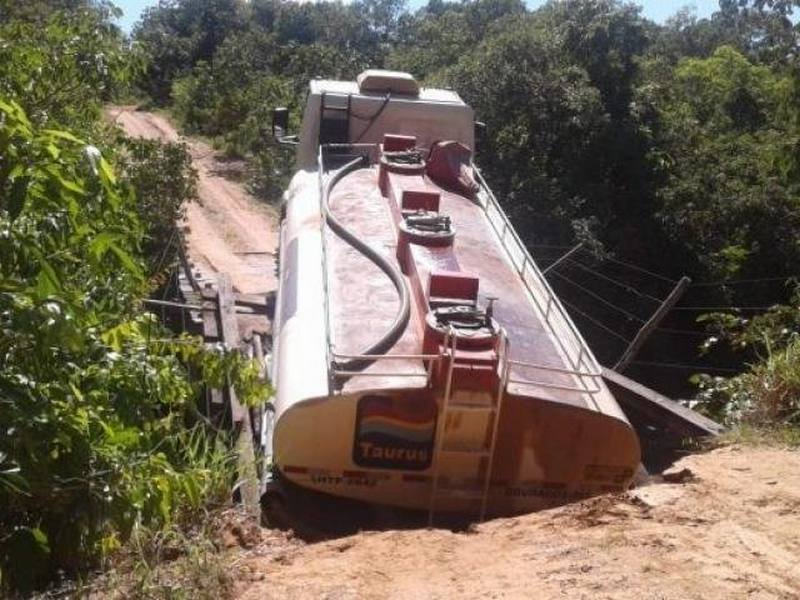 Ponte cede e caminhão tanque fica pendurado há 2 dias sobre rio