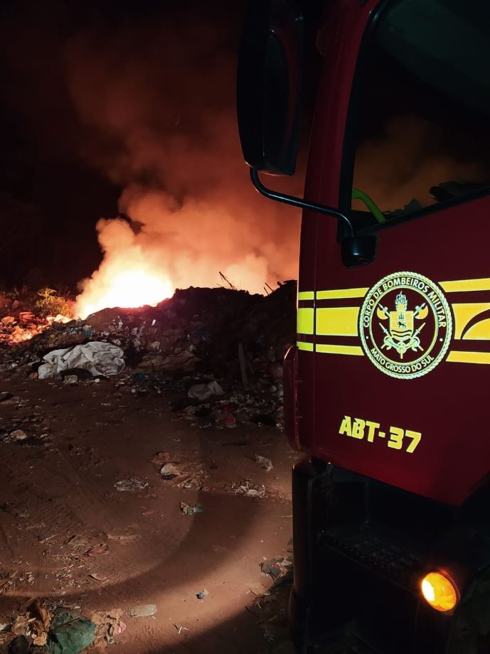 Bombeiros são acionados, durante esta madrugada, para atender incêndio no lixão em cidade de MS